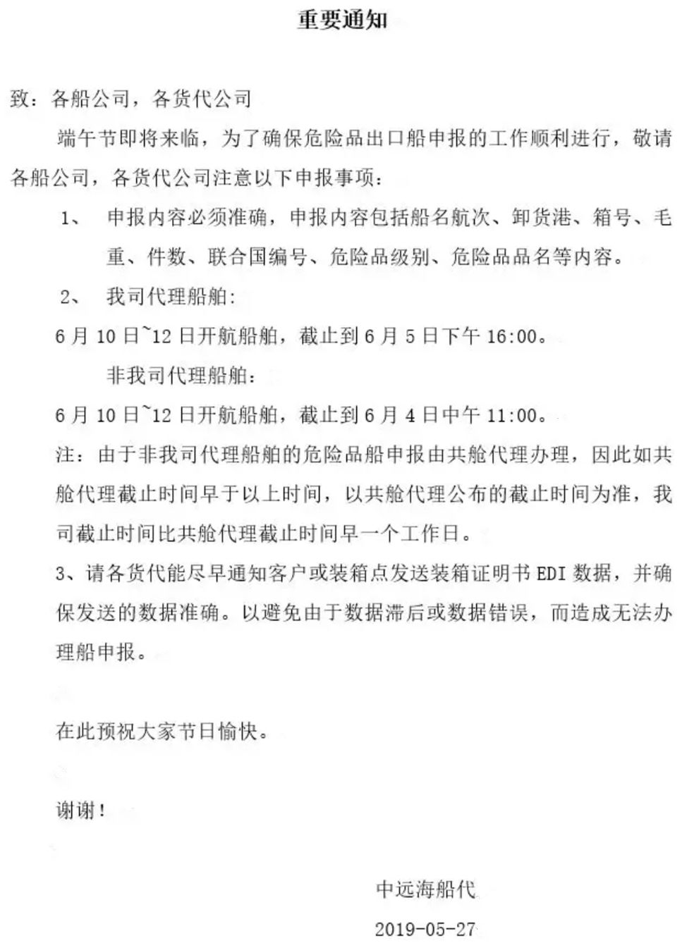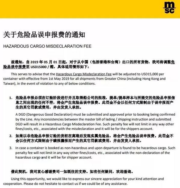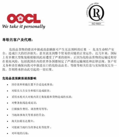 受此影响,船公司、船代再次声明危险品运输的要求: